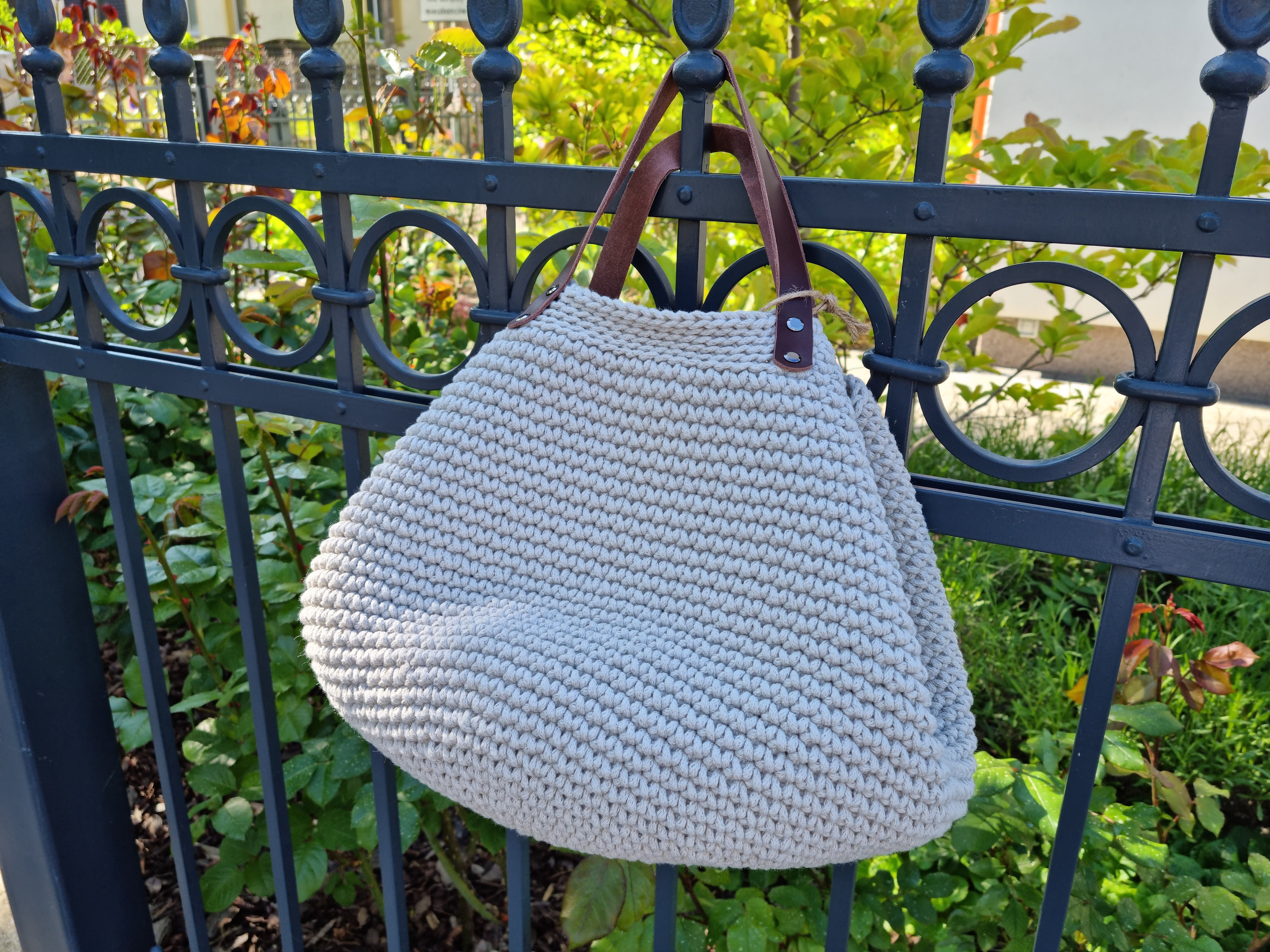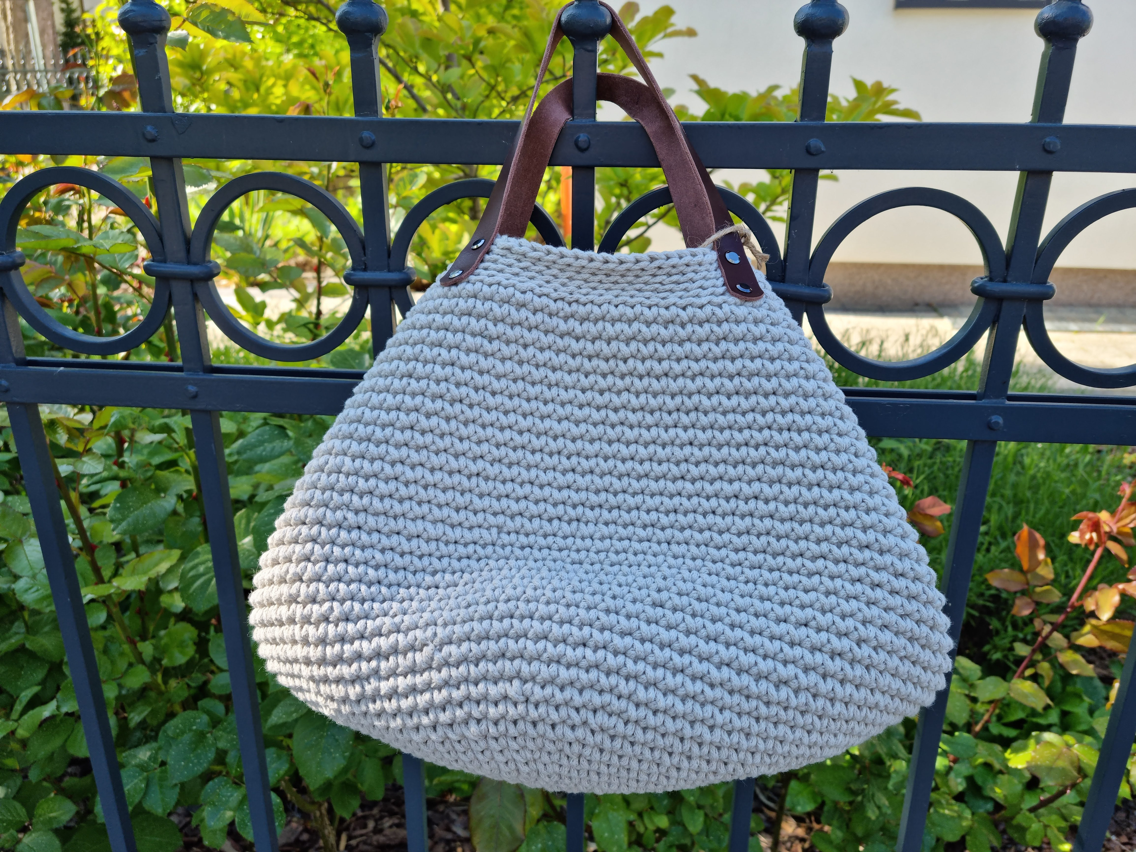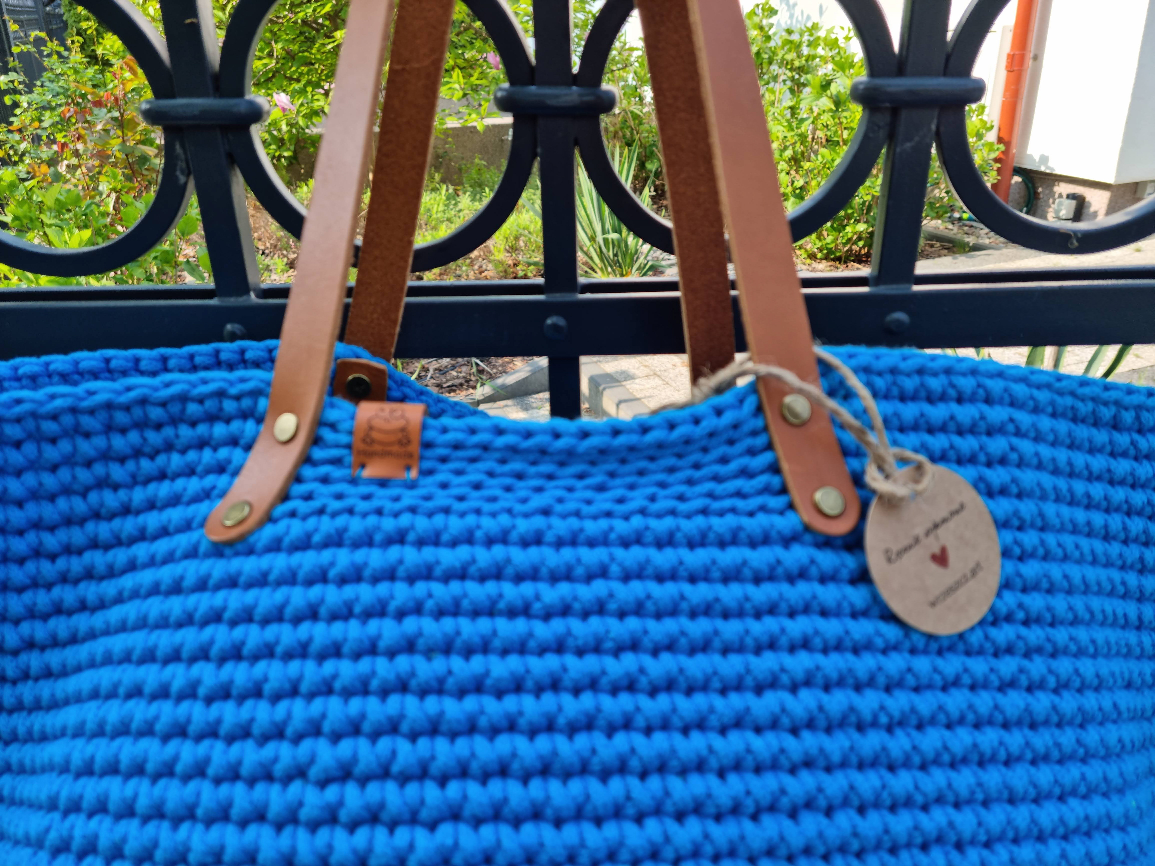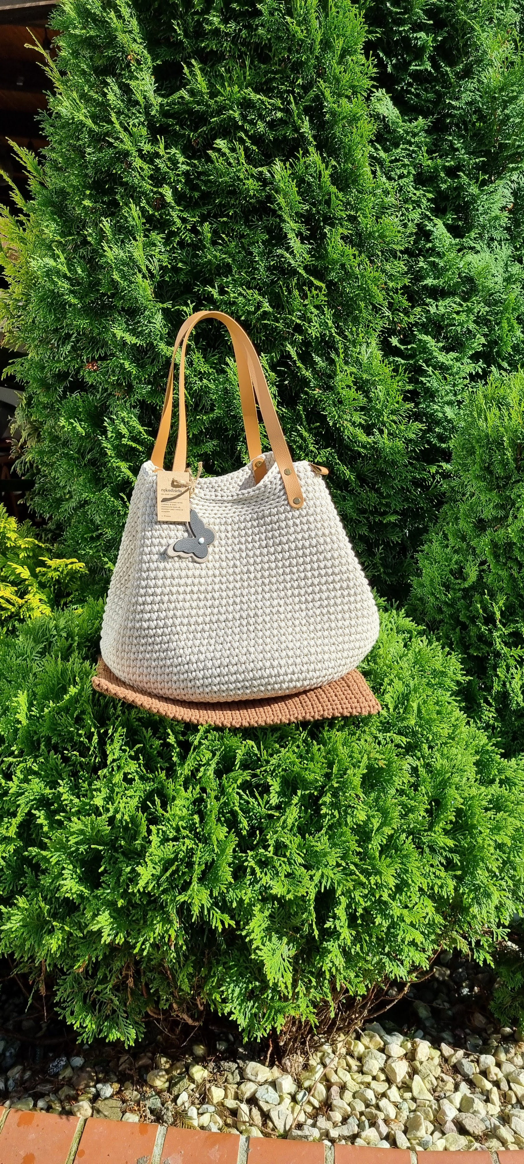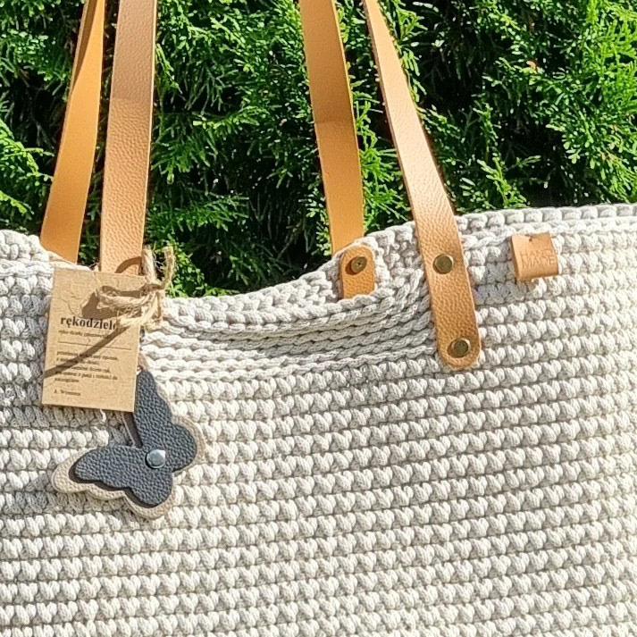 Ręcznie robiona ze sznurka bawełnianego 3 mm, z okrągłym dnem (38 cm) i szerokością u góry aż 60 cm – pomieści absolutnie wszystko.
