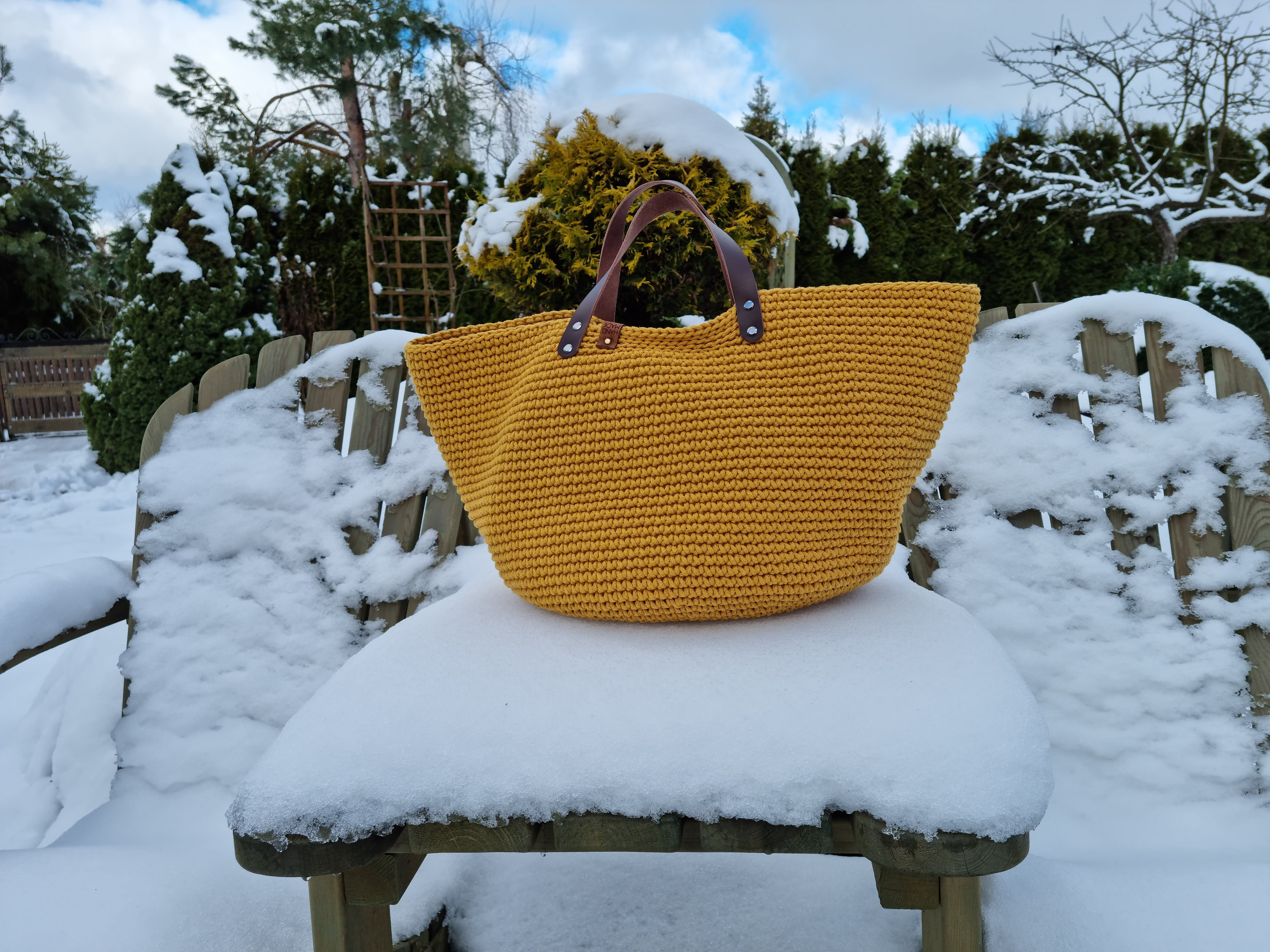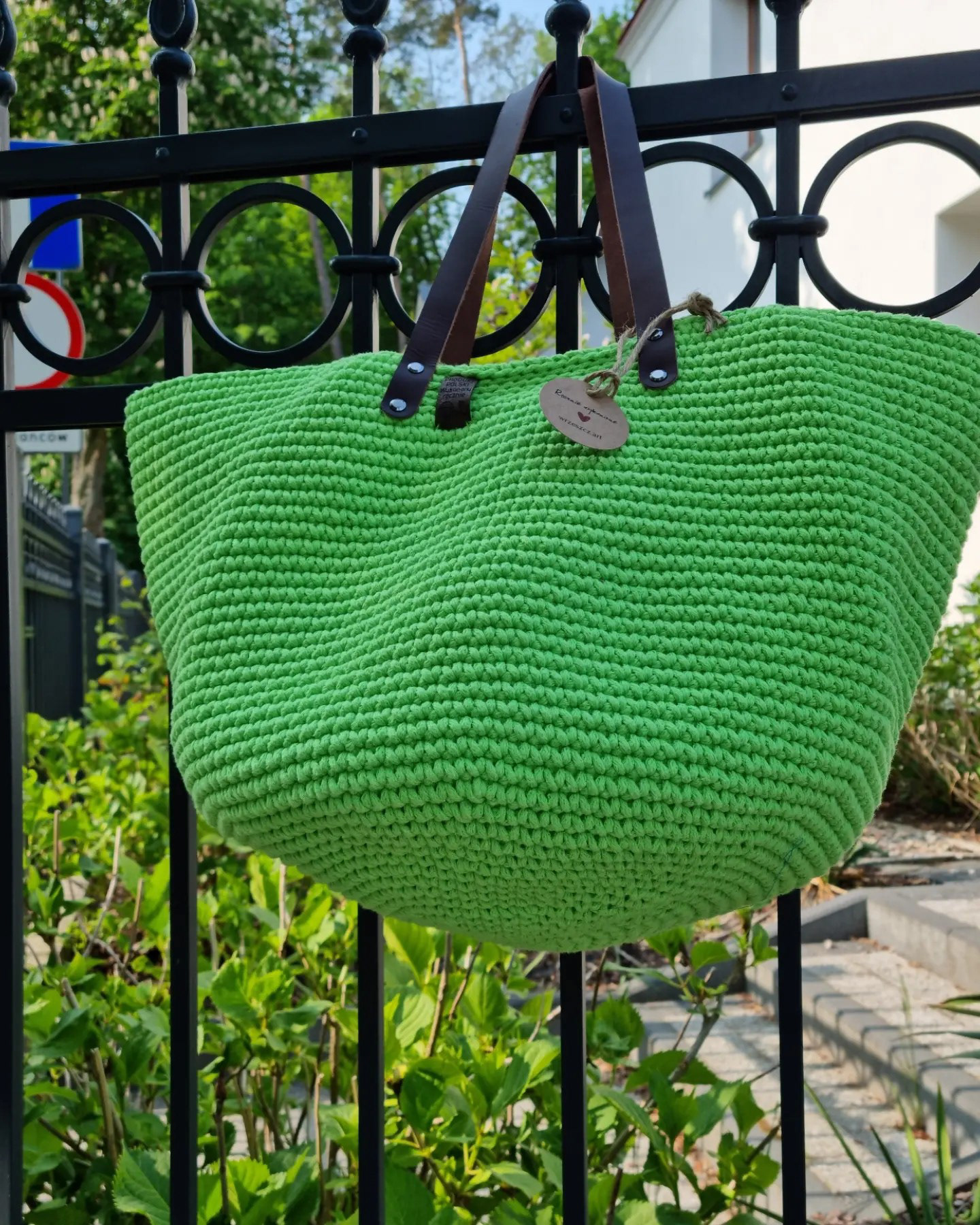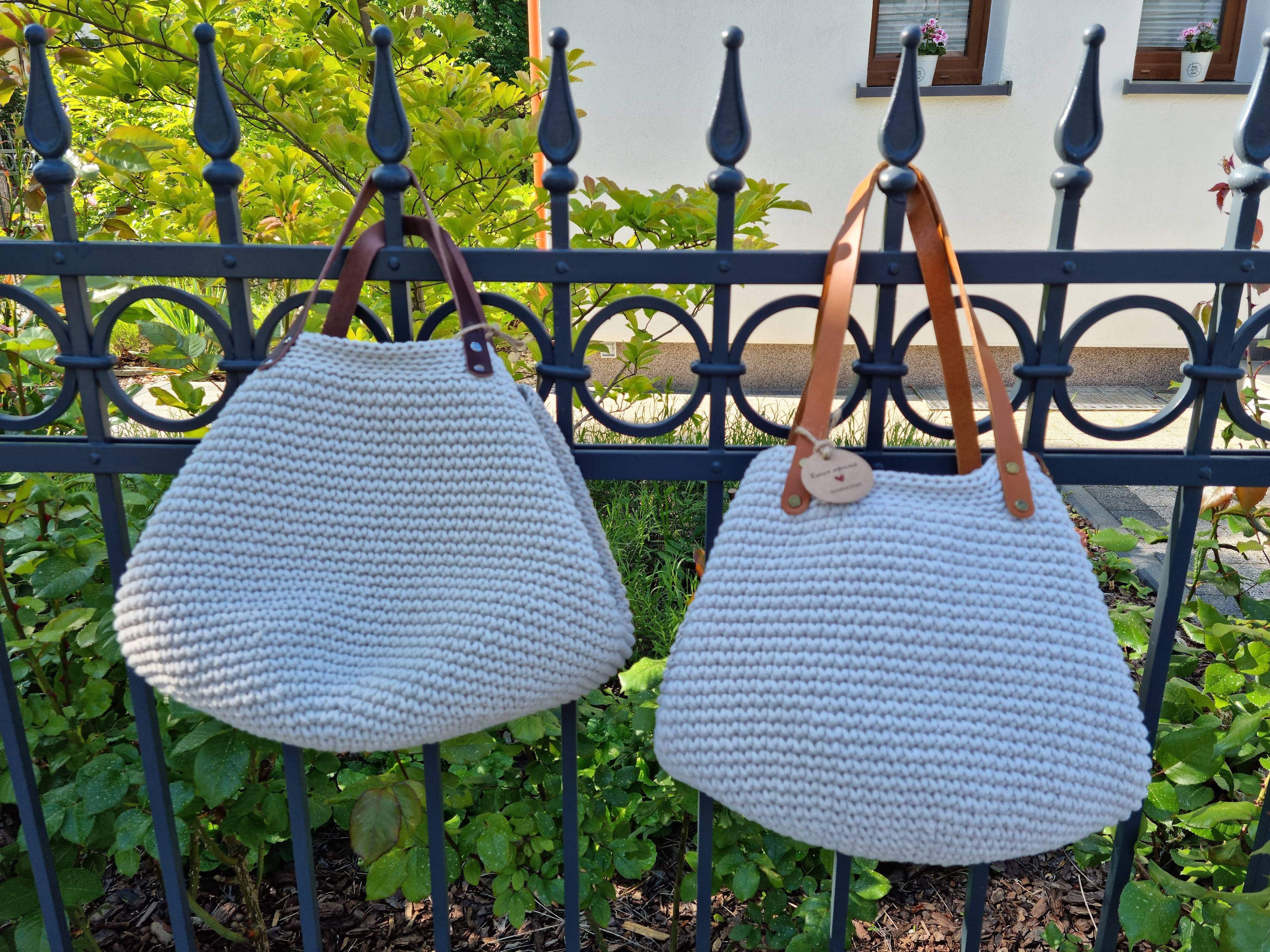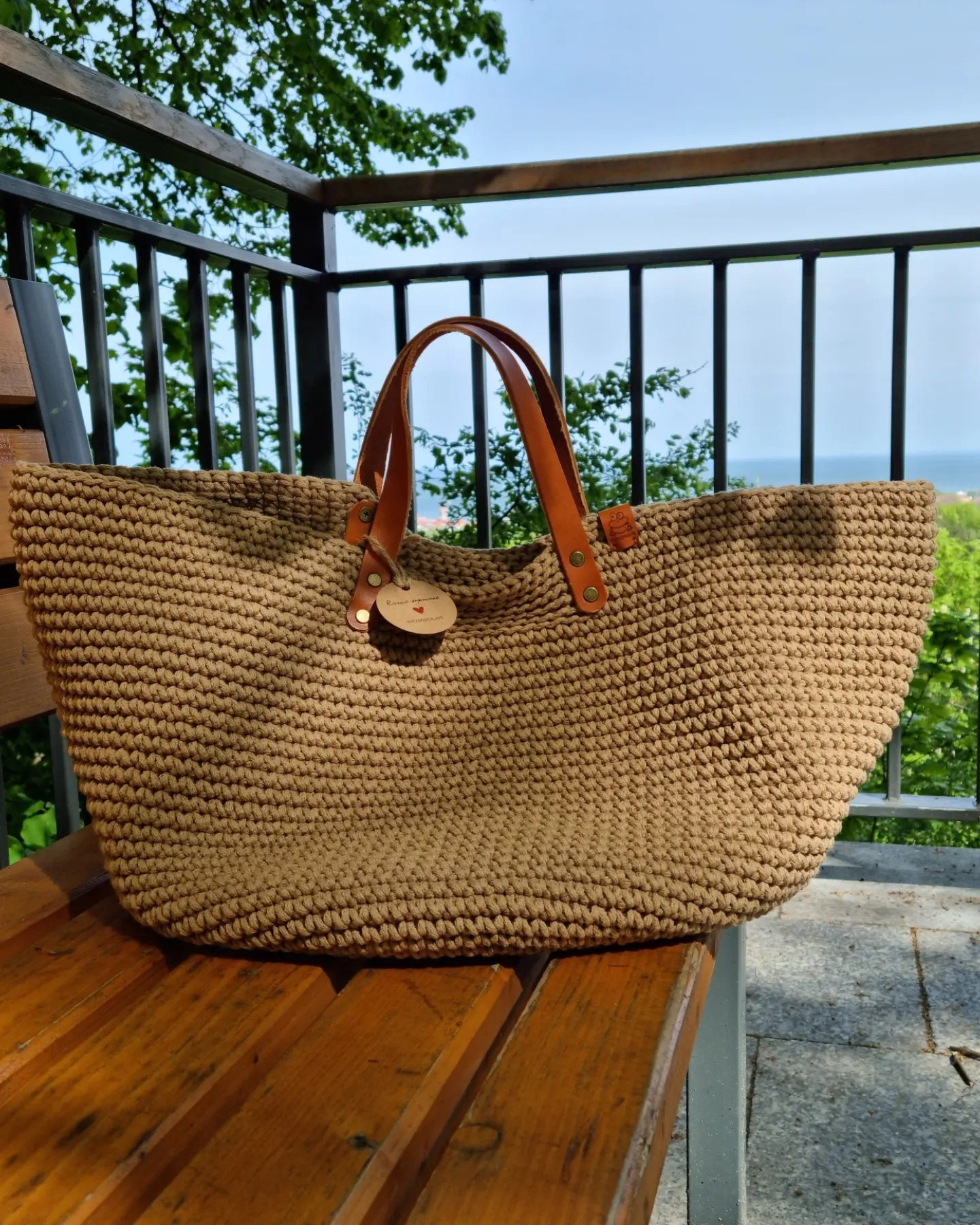 Ręcznie robiona ze sznurka bawełnianego 3 mm, z okrągłym dnem (38 cm) i szerokością u góry aż 60 cm – pomieści absolutnie wszystko.