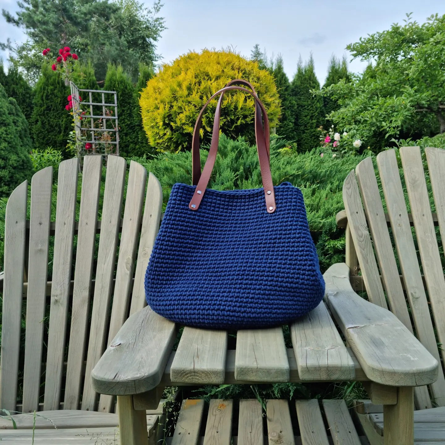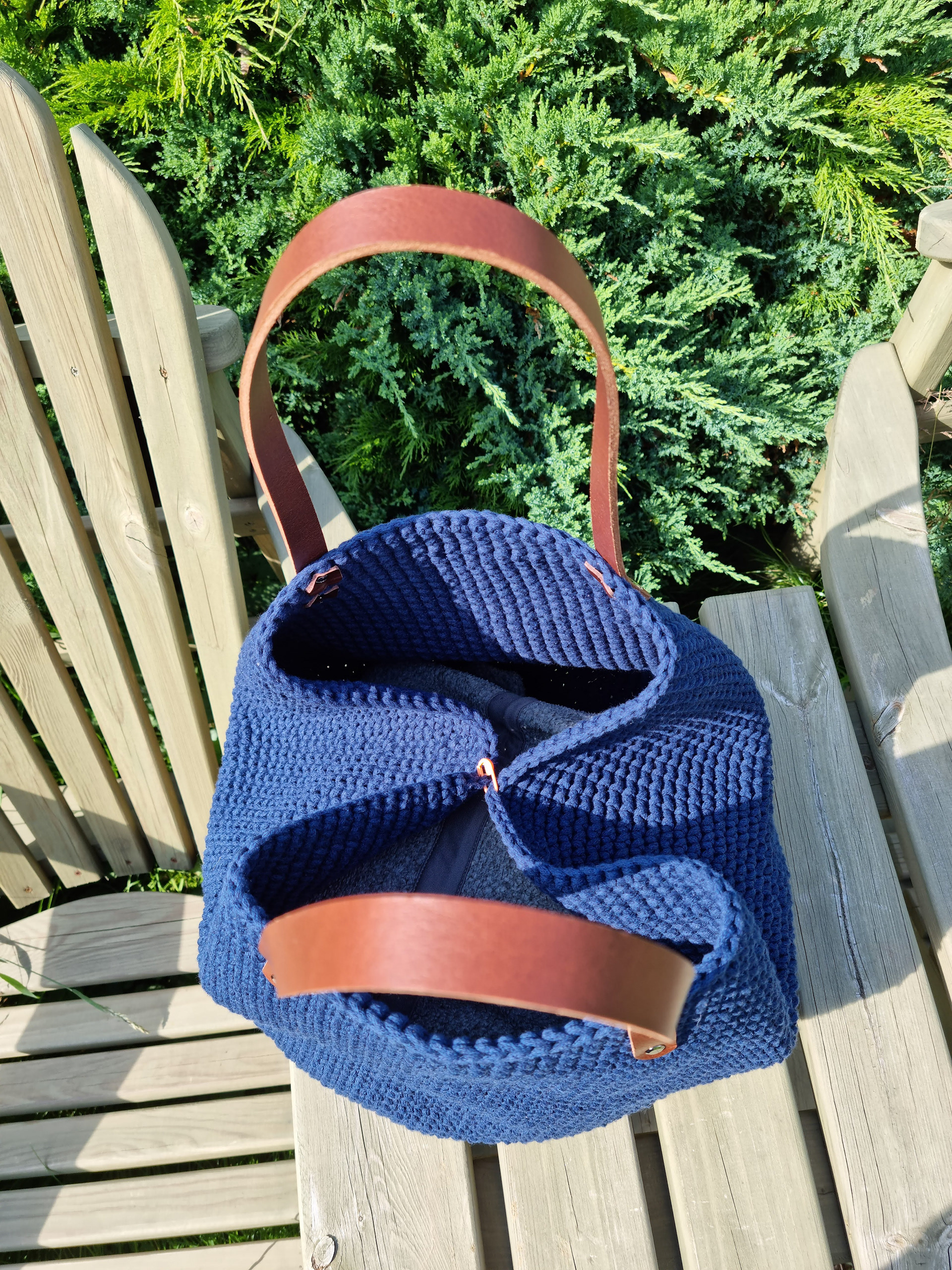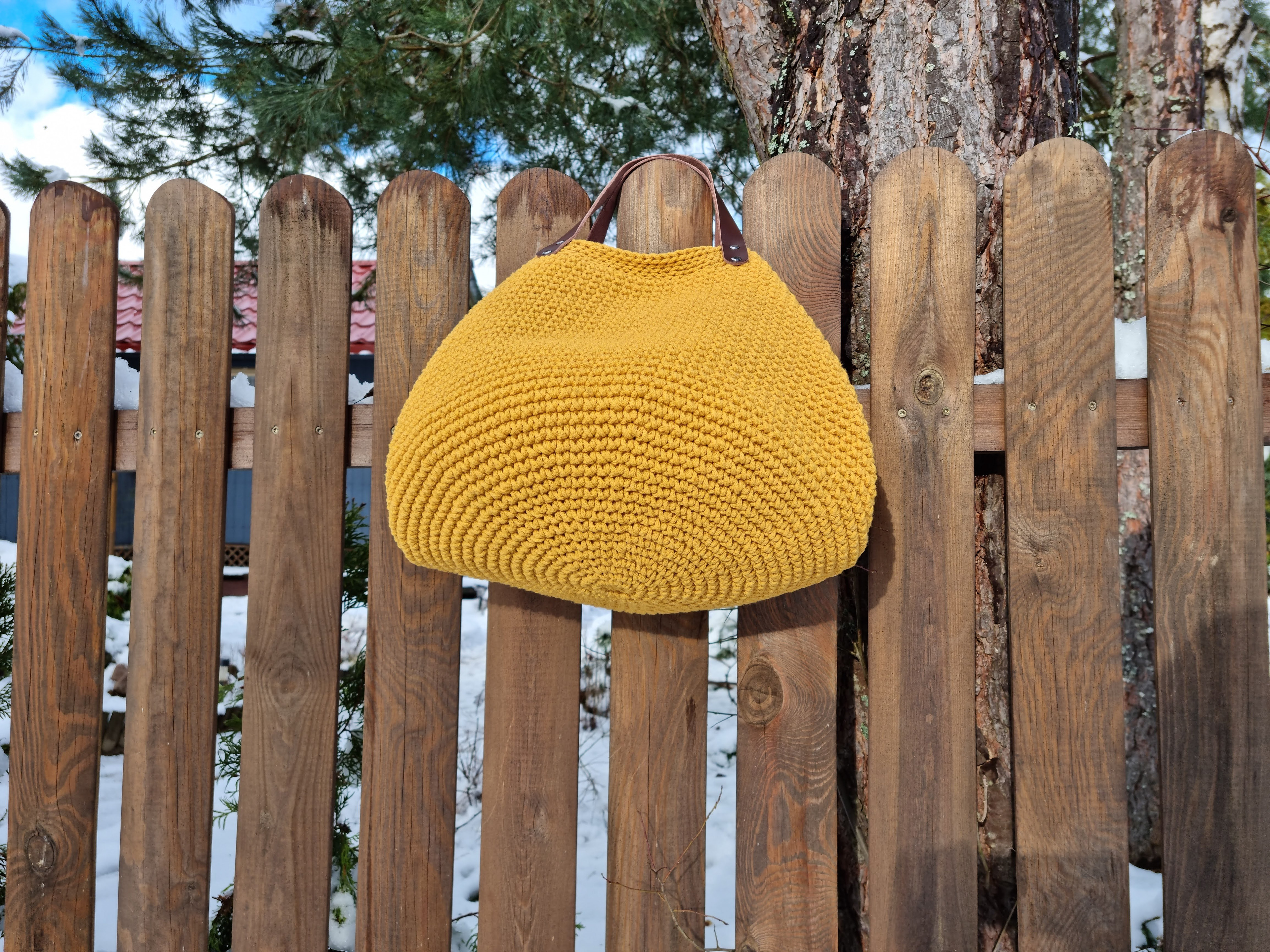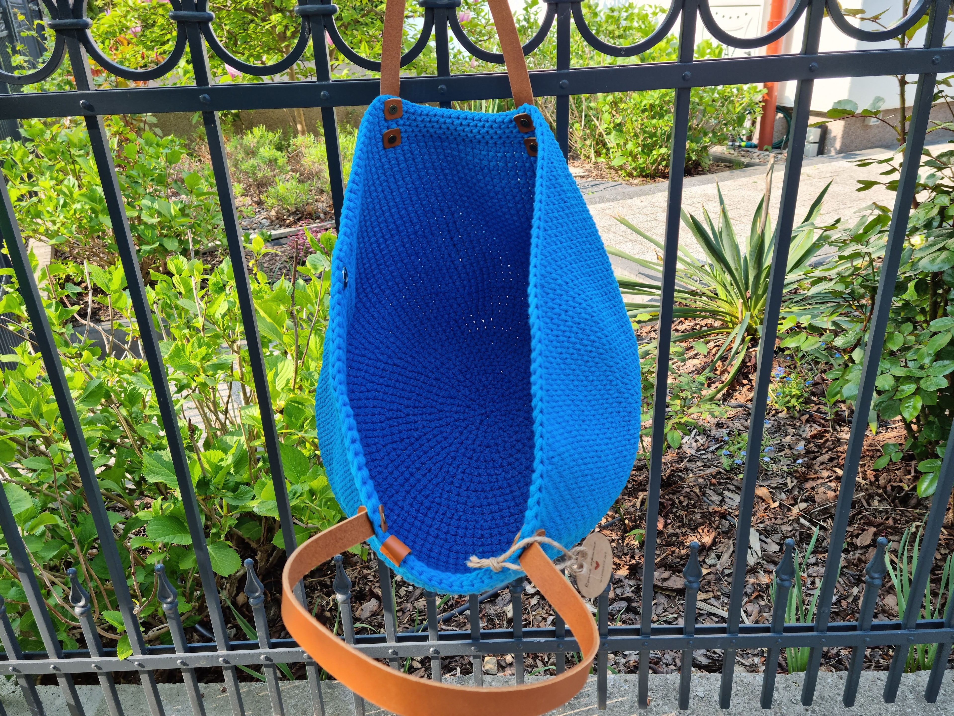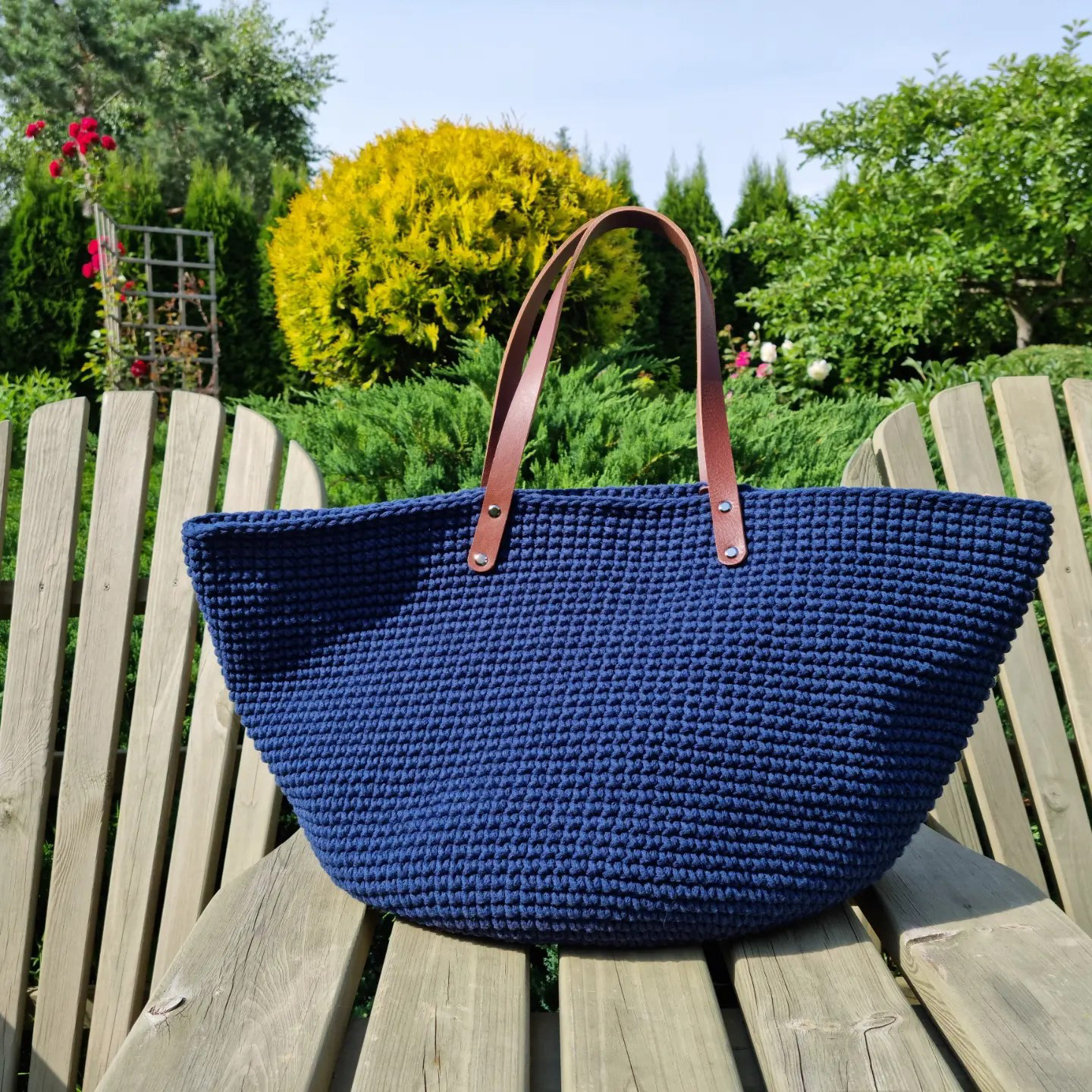 Ręcznie robiona ze sznurka bawełnianego 3 mm, z okrągłym dnem (38 cm) i szerokością u góry aż 60 cm – pomieści absolutnie wszystko.